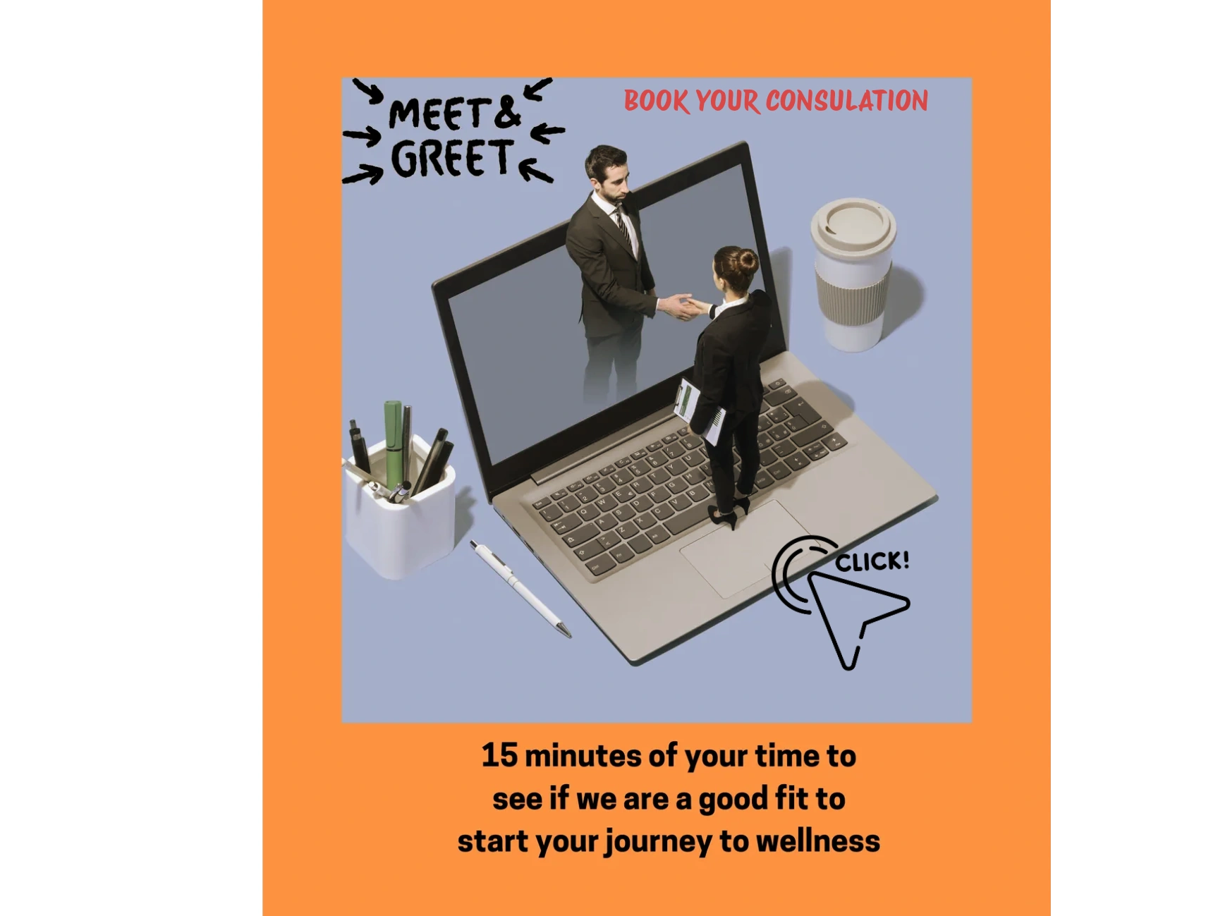 Meet and Greet is virtual through Carepatron HIPAA . The purpose is to get to know each other; discussing all questions you may have about our 90 day Wellness Coaching program Integrating Western and Eastern medicine coaching strategies. Our success rate is above 90% if your determined to achieve quality of life.